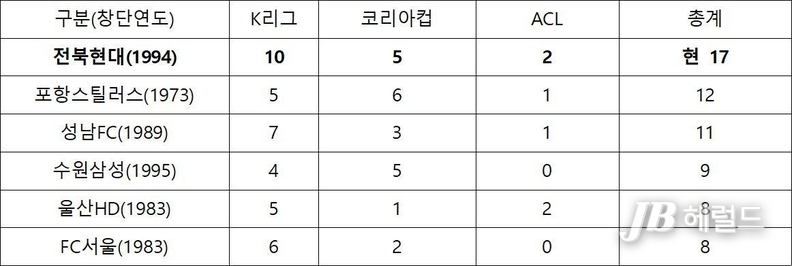 지난 2009년 K리그1 첫 우승과 함께 2010년대 K리그를 호령했던 전북현대는 ‘신흥 강호’라는 타이틀 얻었지만, 이제는 ‘신흥 강호’에서 K리그 최고의 명문 팀으로 거듭났다는 것을 방증한다.
