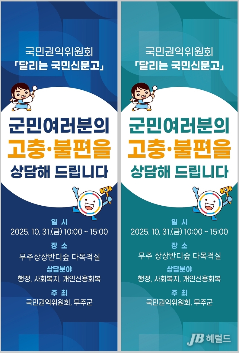 23일 무주군에 따르면 국민권익위원회가 주관하는 ‘달리는 국민신문고’가 오는 31일 오전 10시부터 무주읍 무주상상반디 숲 다목적실에서 무주군민의 애로사항을 청취한다고 밝혔다.