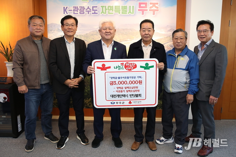 대전 개인택시 반딧불회 회원들이 29일 무주군에 장학금 150만 원, 이웃돕기 성금 1백50만 원 등 총 3백만 원을 기탁했다.