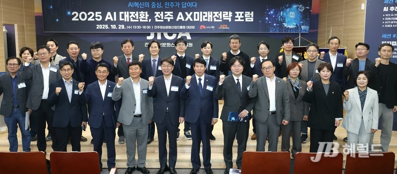 시는 29일 전주정보문화산업진흥원(원장 허전, 이하 진흥원) 대강당에서 우범기 전주시장과 지역 기업인, 대학·연구기관 관계자, 일반 시민 등 150여 명이 참석한 가운데 ‘2025 AI 대전환, 전주AX미래전략 포럼’과 ‘전주시 인공지능(AI) 추진위원회’ 출범식을 공동 개최했다.