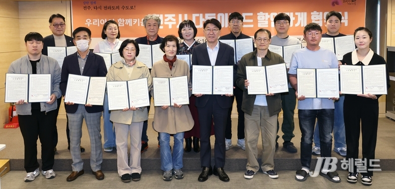 전주시는 29일 전주소통협력센터 2층 컨퍼런스룸에서 전주지역 다자녀가정 우대증(다둥이카드) 소지자에게 혜택을 제공하는 ‘우리아이 함께키움’ 다둥이카드 할인가게 40개소와 협약을 체결했다.
