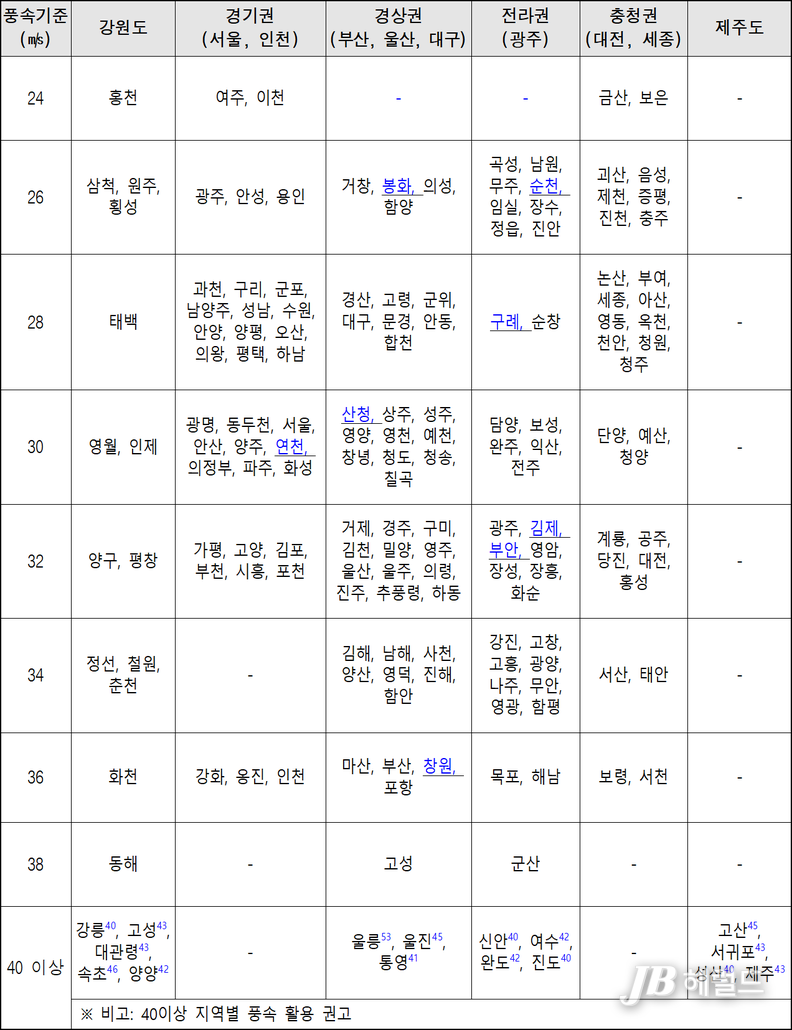 이에 따라, 2024년까지의 기상자료를 분석하여 내재해(재해에 견딜 수 있는) 설계기준을 정비하였다. 내재해 기준은 적설심(눈의 깊이)과 풍속으로 구분되는데, 적설심은 14개 지역, 풍속은 8개 지역에서 강화된다. 이에 따라 풍속 강화지역엔 전북 지역에서 부안과 김제가 포함됐다.