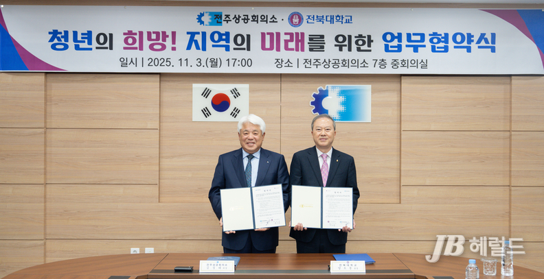 양오봉 총장은 “이번 협약은 대학과 지역 경제단체가 함께 청년들의 실질적인 역량을 높이고, 지역사회 인재의 취업 경쟁력을 강화하기 위한 의미 있는 협력”이라며 “앞으로도 전북대는 학생들의 성장과 지역 일자리 창출을 위해 다양한 기관과의 연대를 확대해 나가겠다”고 밝혔다./장병운기자