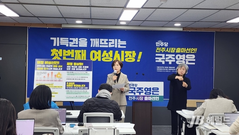 전북자치도의회 제12대 전반기 의장을 지낸 국주영은 의원은 15일 전주시에서 기자회견을 열고 2026년 제9회 전국동시지방선거 전주시장 출마와 함께 더불어민주당 전주시장 후보 경선 참여를 공식 선언했다고 밝혔다.
