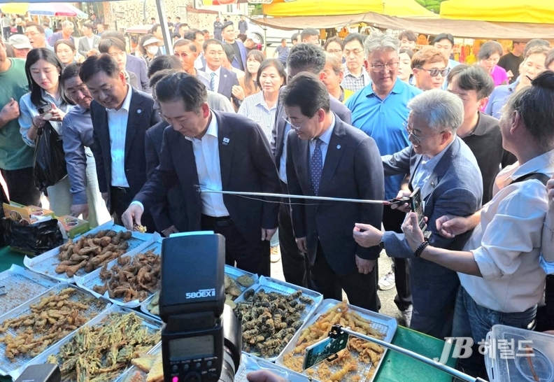 이원택 도당위원장도 ”민생 회복을 위해 가장 앞장서 노력하겠다“며 ”시민들은 더욱 풍성하게 장을 보고 상인들은 이번 추석 대목엔 어느 때보다 퐁요로운 결실이 있길 기대한다“고 말했다./장병운 기자