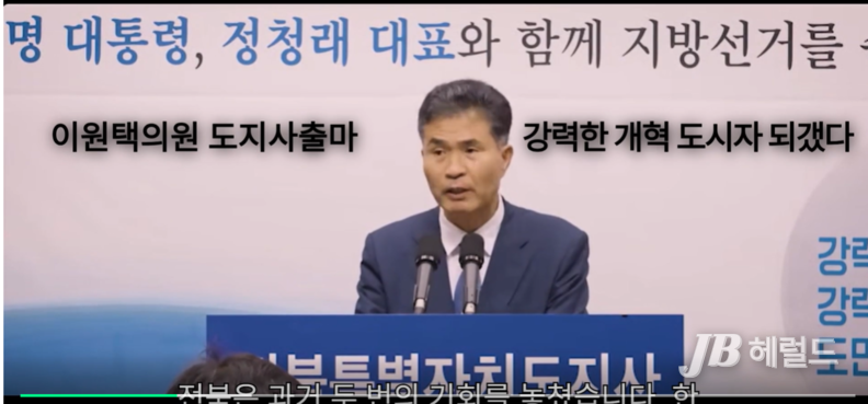 이 의원은 "저는 가장 강력한 개혁 도지사, 가장 강력한 민생 도지사, 가장 강력한 경제 도지사, 도민과 가장 가까운 친구, 전북 아저씨가 되겠다"며 "전북은 이대로 주저앉을 수 없습니다. 오직 민주당, 오직 전북밖에 모르는 이원택, 민주당 바보, 전북 바보 저 이원택이 전북을 더 높이 일으켜 세우겠다"고 말했다.