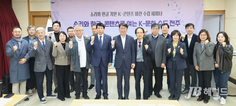 전주시와 전주시정연구원(원장 박미자, 이하 연구원)은 13일 완판본문화관 인청에서 ‘소리와 한글 기반 K-콘텐츠 비전 수립을 위한 세미나’를 개최했다.