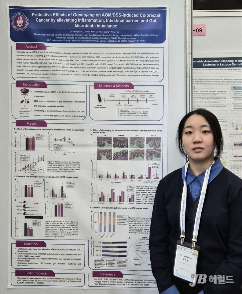 백진영 연구원은 “학부 시절부터 꾸준히 전통 발효장류의 생리활성을 연구해 왔는데, 이번 수상으로 그 노력이 결실을 맺게 되어 기쁘다”며 “내년 대학원 진학 후에는 전통 장류의 새로운 건강기능성과 관련 분자대사영양학적 기전을 더 깊이 연구하고 싶다”고 말했다./장병운기자