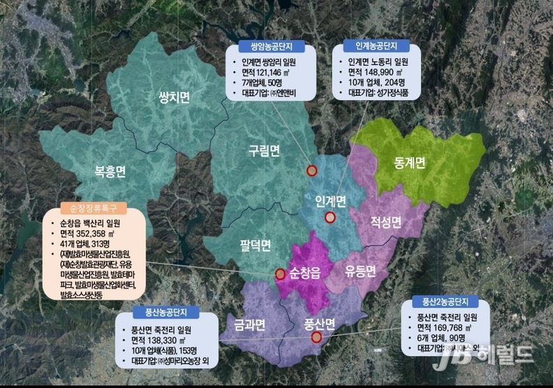 순창 미생물 농생명산업지구(93㏊)는 지역 특화 미생물 자원과 발효 기술을 활용한 글로벌 미생물 융복합 산업지구로 조성된다. 공공임대형 지식산업센터, 농산업혁신벨트, 산업용 미생물 공급망, 그린바이오 실증지원시설 등 핵심 기반을 구축하고, 고추장 마을 중심의 ‘K-발효 관광 명소화’도 추진한다. 이를 통해 산업과 관광을 접목한 융합모델로 지역경제 다변화를 유도한다.