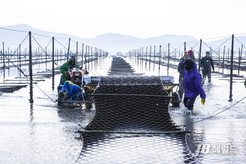 400년 전통의 지주식 김 수확이 중단 위기를 극복하고 겨울밥상에 오른다.