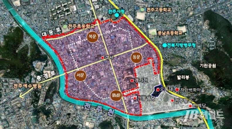 전주부성 동문·서문·북문 복원 예정지의 경우 풍남문 주변 높이 제한 기준을 준용해 8m(2층) 이하로 건축물 높이 제한이 적용된다.