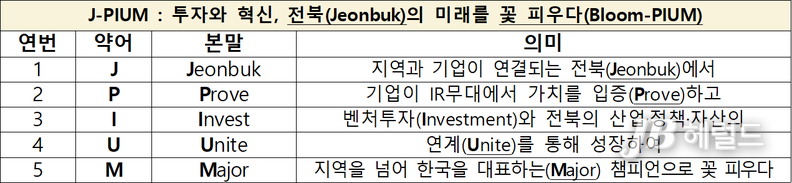 전북특별자치도는 J-피움 플랫폼을 중심으로 유망기업 발굴부터 후속 투자와 스케일업까지 전 과정을 체계적으로 지원해 글로벌 경쟁력을 갖춘 기업 육성에 속도를 낼 방침이다.