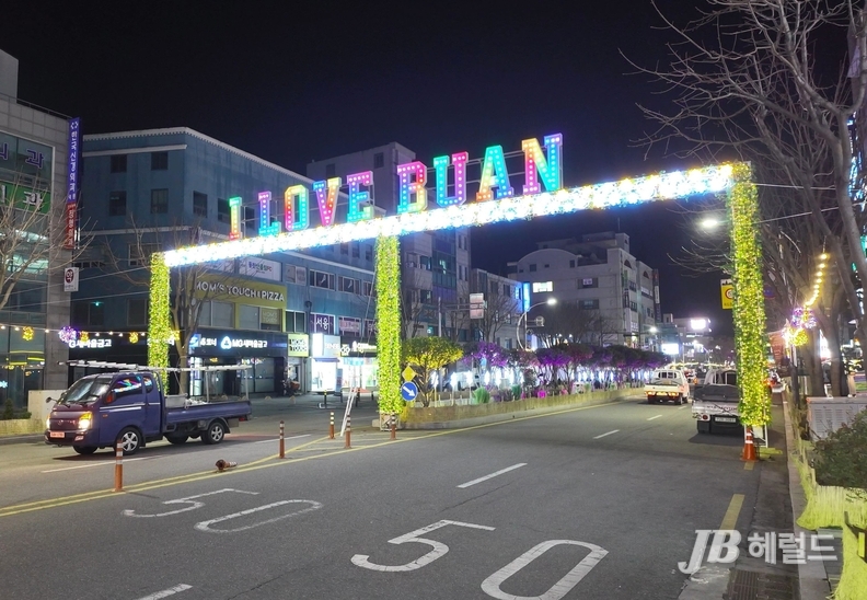 부안군은 23일 전북 부안읍 터미널사거리를 중심으로 야간경관을 설치하고 점등 행사를 통해 연말연시 분위기를 한층 끌어올렸다고 밝혔다라고 밝혔다.