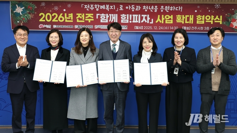 전주시는 24일 전북 전주시 전주시장실에서 전주시시니어클럽연합회와 함께 전주 함께힘!피자 사업 확대 협약을 체결하고 청년과 노인을 아우르는 복지 모델을 본격 추진한다고 밝혔다.
