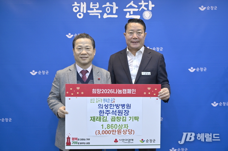 한주석 의성한방병원장은 최근 순창군을 방문해 재래김과 곱창김 1,860상자(3,000만 원 상당)를 어려운 이웃들에게 전달해 달라며 기탁했다.