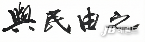 여민유지는 맹자 등문공 하편에 등장하는 구절에서 유래한 말로, 정치는 백성이 공감하고 스스로 따를 수 있는 길을 함께 걷는 것이라는 철학을 담고 있다. 이번 사자성어 휘호는 세계서예전북비엔날레조직위원회 윤점용 집행위원장이 맡아 전북의 도약과 연대를 표현했다.