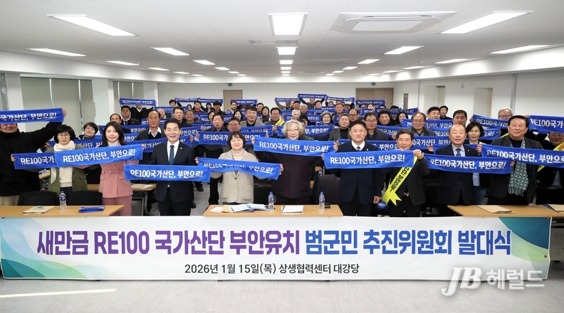 새만금 RE100 국가산단 부안 유치를 위한 범군민 추진위가 공식 출범하며 지역 역량 결집에 나섰다.