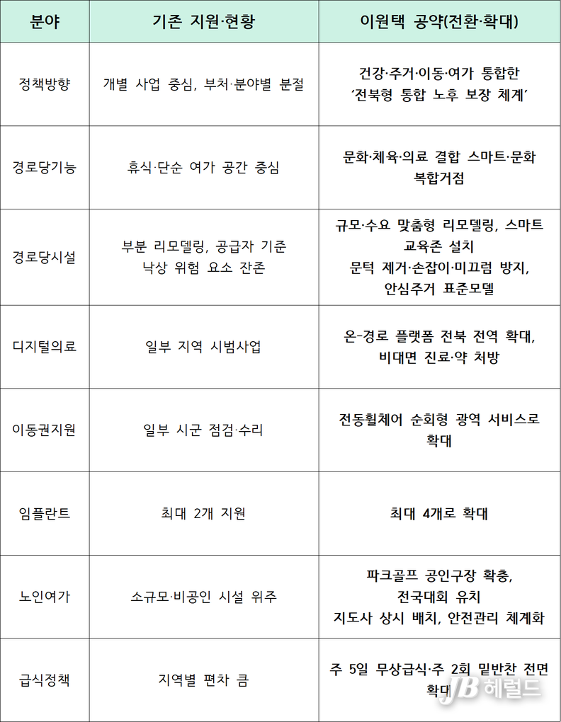 이원택 국회의원이 전북 전역의 경로당을 스마트 문화 복합 거점으로 전환하고 임플란트 지원 4개로 확대하는 전북형 통합 노후 보장 체계 공약을 발표했다.