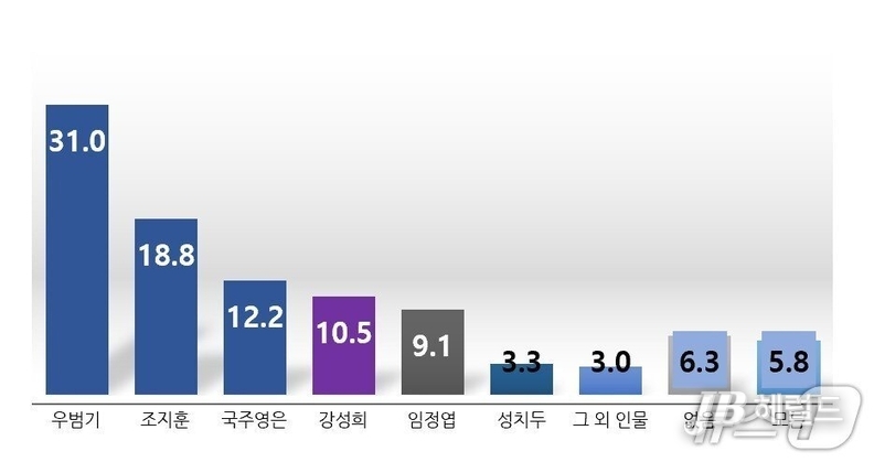 국주영은 현 민주당 당대표 특보(더불어민주당)가 12.2%, 강성희 진보당 전 국회의원이 10.5%를 차지했다. 임정엽 전 완주군수(무소속)는 9.1%, 성치두 전 민주당 전북도당 청년소통위원장(더불어민주당)은 3.3%의 지지를 얻는 데 그쳤다. 그 외 다른 인물은 3.0%, 없음은 6.3%, 모름은 5.8%였다.