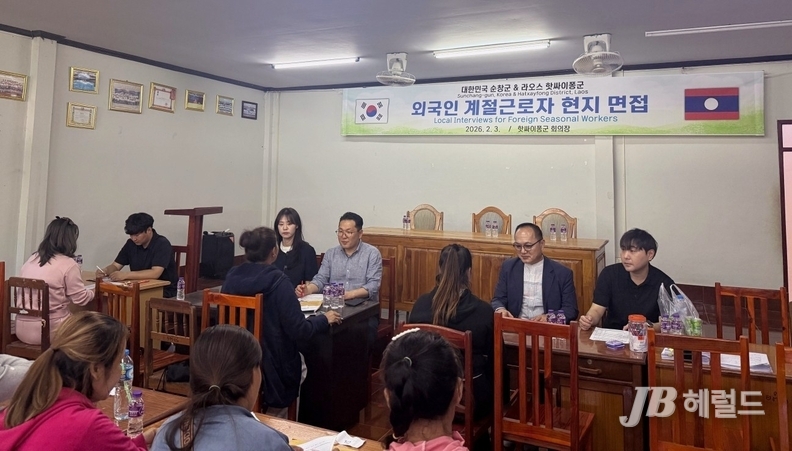 순창군은 지난 2일부터 4일까지 라오스 핫싸이퐁군에서 외국인 계절근로자 현지 면접을 실시해 최종 40명을 선발했다고 밝혔다. 군 관계자는 “이번 현지 면접은 신뢰할 수 있는 근로자를 직접 선별하고 지역 간 협력 체계를 강화하는 의미 있는 과정”이라며 “계절근로자 도입이 농가 경영 안정과 농촌 활력 회복에 도움이 될 것으로 기대한다”고 말했다.
