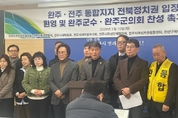 [전북뉴스] 전주시 주민자치협의회와 통장연합회, 새마을회 등 자생단체들이 전북 정치권의 완주·전주 통합 공개 찬성 입장을 전북의 미래를 위한 역사적 결단으로 평가하며 조속한 실행을 촉구하고 나섰다. 전주시 주민자치협의회와 통장연합회, 전주시 새마을회를 비롯한 자생단체 일동은 10일 전주시에서 성명을 내고 안호영 국회의원과 정동영 통일부 장관, 이성윤 국회의원, 김윤덕 국토교통부 장관 등 전북 정치권 주요 인사들이 완주·전주 통합에 찬성 입장을 밝힌 데 대해 전주 시민의 이름으로 강력히 환영한다고 밝혔다. 이들 단체는 이번 정치권의 통합 의지 표명을 두고 “다소 늦은 감은 있지만 완주·전주 통합이 더 이상 미룰 수 없는 전북의 생존 문제이자 시대적 과제임을 공식적으로 확인한 고뇌에 찬 결단”이라고 평가했다. 이어 완주·전주 통합은 단순한 행정구역 통합이 아니라 수도권 일극 체제와 광역권 경쟁 속에서 전북의 소멸 위기와 공동화 현상을 극복하기 위한 불가피한 선택이며, 전북의 경쟁력을 확보하기 위한 필수 조건이라고 강조했다. 자생단체들은 청년 인구 유출과 기업 이전, 지역 소멸이 현실화되고 있는 상황에서 통합을 반대하는 것은 전북의 미래를 포기하는 것과 다름없다고