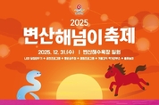 부안군이 오는 31일 서해안의 대표적인 해넘이 명소인 변산해수욕장에서 2025 변산 해넘이축제를 개최한다. 부안군은 18일 한 해를 마무리하며 군민과 관광객이 함께하는 체험형 및 감성형 연말 축제를 변산해수욕장 일원에서 성대하게 진행한다고 밝혔다. 이번 축제는 변산의 아름다운 낙조를 배경으로 다양한 공연과 퍼포먼스가 펼쳐질 예정이며 권익현 부안군수는 2025 변산 해넘이축제는 한 해의 끝자락에서 서로의 안녕과 희망을 나누는 따뜻한 자리가 될 것이라고 강조했다. 식전 행사로는 변산지역 난타팀인 바람꽃난타와 농악단 천둥소리가 축제의 흥을 돋우고 3인조 팝페라그룹 라오니엘이 무대에 올라 연말의 낭만적인 분위기를 한층 고조시킬 계획이다. 축제의 하이라이트인 엘이디 달집 점등식과 소원등 밝히기 퍼포먼스에서는 참여자들이 새해 소망을 담은 등불을 밝히며 희망찬 새해를 기원하는 특별한 시간을 갖게 된다. 이와 함께 신년 축하영상 상영과 대북공연 등 다채로운 개막행사가 이어지며 축제장을 찾은 방문객들에게 잊지 못할 감동을 선사할 것으로 기대를 모으고 있다. 병오년 붉은 말의 해를 맞이하여 부안의 상징인 철쭉 모양 소원지로 꾸며진 소원꽃밭과 붉은 말 키링 만들기 체험 그리고