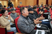 무주군이 올해 사과병해충 자료를 바탕으로 내년 반딧불사과 품질과 시장경쟁력 확보에 나섰다. 무주군은 25일 농민의 집 농민마당에서 ‘2025 사과 병해충 예찰 방제 시범사업’ 평가회를 개최했다고 밝혔다. 이번 평가회는 사업 추진 결과에 대한 성과를 분석하고 병해충 발생 및 방제 현황, 농약사용 등의 문제점을 파악해 개선 방안을 모색한다는 취지에서 마련된 것으로, 예찰 사업 추진 농가를 비롯해 무주과수영농조합, 관심 농가 등 1백여 명이 참석했다. (사)한국과수병해충예찰연구센터 장일 대표는 이 자리에서 올해 무주군의 기상 변화와 개화기 저온, 가을장마 등으로 인한 주요 피해 사례를 분석해 맞춤형 방제 기술을 교육했다. 또한 무주 사과 병해충 밴드(Band) 운영 성과와 다양한 현장 사례를 함께 소개했다. 참석자들과 재배, 방제, 저장 등 사과 농업 혁신과 시장경쟁력 확보 전략 등을 논의하는 시간도 가졌다. 무주군은 올해 총 1억 6천만 원을 투입해 6개 읍·면에서 84개 농가를 대상으로 사과 병해충 예찰·방제 시범사업을 추진해 왔다. 이 과정에서 무주과수영농조합법인과 (사)한국과수병해충예찰연구센터가 협약을 맺고 교육 및 현장 예찰 활동을 실시하는 등 농가 대응
