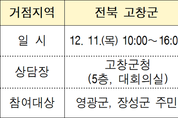 국민권익위원회가 고창군과 부안군에서 달리는 국민신문고를 운영한다. 국민권익위원회는 11일 전북특별자치도 고창군, 12일 전북특별자치도 부안군에서 각각 생활 속 고충과 불편을 상담하는 ‘달리는 국민신문고’를 운영한다고 8일 밝혔다. 이번에 개최되는 ‘달리는 국민신문고’ 상담장에서는 강진군, 고창군, 부안군 지역주민들은 물론 인접한 해남군. 영암군, 장흥군, 영광군, 장성군, 김제시 주민들도 상담받을 수 있다. ‘달리는 국민신문고’는 국민권익위 조사관과 협업기관 전문가로 구성된 상담반이 전국을 순회 방문하여 현장에서 주민들의 민원을 상담하고 해결방안을 모색하는 제도다. 국민권익위는 중앙정부, 지방정부 또는 공공기관의 행정과 관련한 민원을 상담하고, 협업기관인 대한법률구조공단ㆍ한국소비자원ㆍ한국국토정보공사 등은 생활법률, 소비자피해, 지적정리 등 주민들의 생활민원을 상담한다. 국민권익위는 그동안 ‘달리는 국민신문고’를 통해 지역주민들과 행정기관 간 갈등을 해결하는 등 주민들의 고충 해소를 위해 노력해왔다. 국민권익위 양종삼 고충처리국장은 “국민권익위는 2025년 한 해 동안 ‘달리는 국민신문고’를 통해 지역주민들을 위한 생활밀착형 민원 해결 서비스를 제공하였다.”라
