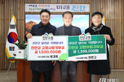 진안군에 고향을 향한 기업인의 따뜻한 나눔이 이어지고 있다. 진안군은 22일 진안군에서 유한회사 승원 염경훈·최문규 공동대표가 고향사랑기부금 300만원을 기탁했다고 밝혔다. 이번 기탁은 “지난해에 이어 올해도 고향사랑기부제에 동참해 지역 발전에 힘을 보태고 싶었다”는 두 대표의 뜻에 따라 이뤄진 것으로, 각 150만원씩 정성을 모아 전달됐다. 유한회사 승원은 진안군 마령면에 소재한 콘크리트 타일과 기와, 벽돌 및 블록을 제조하는 기업으로, 지역에 뿌리를 두고 안정적인 경영을 이어오며 지역경제 활성화에 기여하고 있다. 이번 고향사랑기부금 기탁 역시 지역과 함께 성장하겠다는 기업의 사회적 책임 실천의 일환으로 평가된다. 특히 승원은 평소에도 어려운 이웃과 저소득층을 위한 지원은 물론, 청소년을 대상으로 한 장학금 후원 등 다양한 사회공헌 활동을 꾸준히 펼쳐 지역사회에 귀감이 되고 있다. 이러한 나눔 활동은 지역 공동체의 연대감을 높이고, 지속 가능한 지역 발전의 밑거름이 되고 있다. 염경훈 대표와 최문규 대표는 평소 진안에 대한 애정과 관심을 갖고 있었다며 지역 발전에 조금이나마 힘을 보태고자 올해도 뜻을 함께해 기부에 참여하게 됐다고 전했다. 또한 앞으로도 고